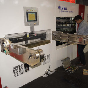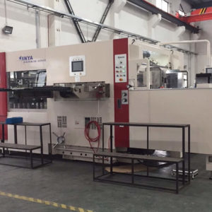 The ZETI-TECHCUT fully automatic flatbed die-cutting machine SR-1650 series is manufactured by Taiwanese based and founded Jinya Machinery Company, a professional manufacturer of fully automatic die-cutting, creasing, and stripping machines.